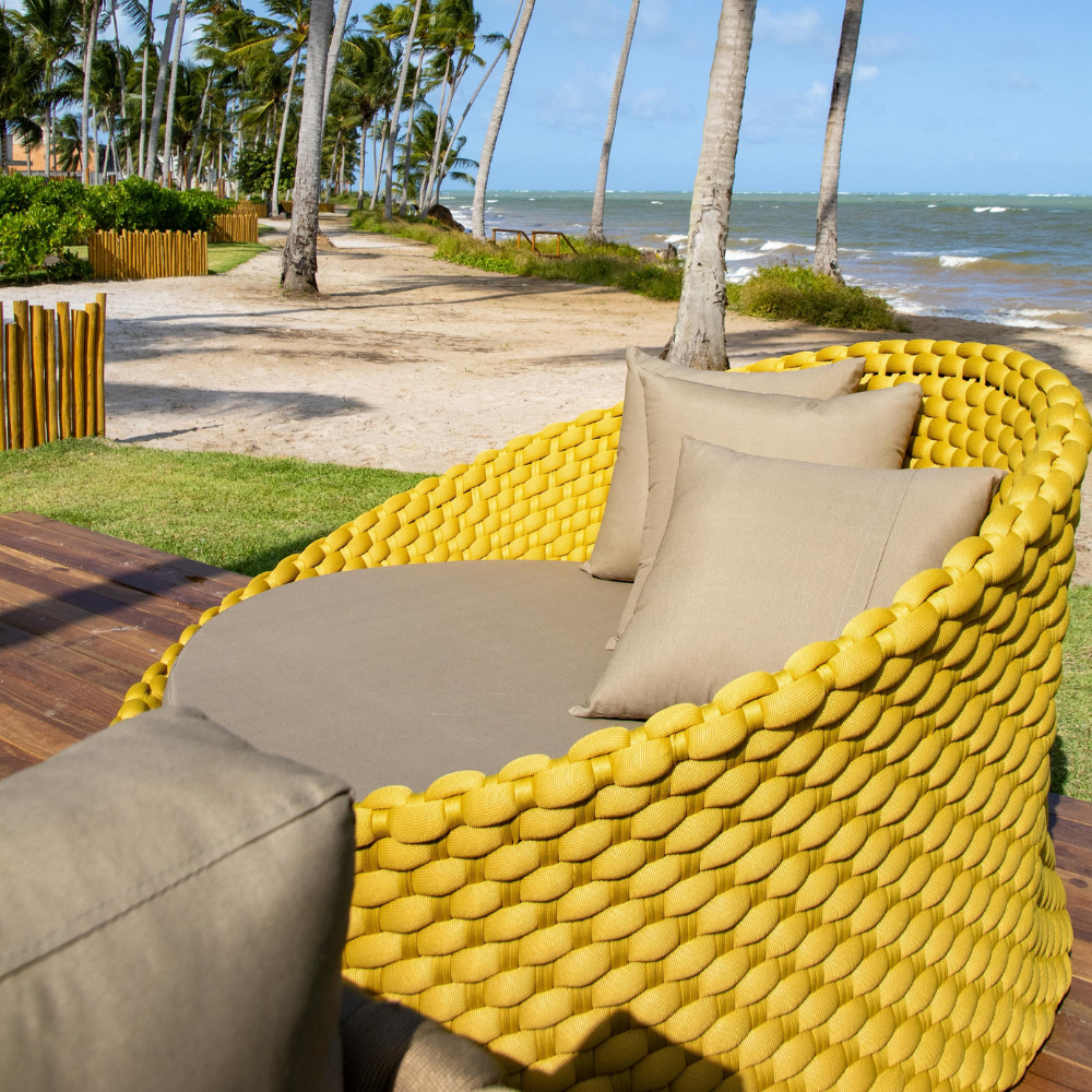 Em Tricô Náutico com estrutura em alumínio e tecido impermeável