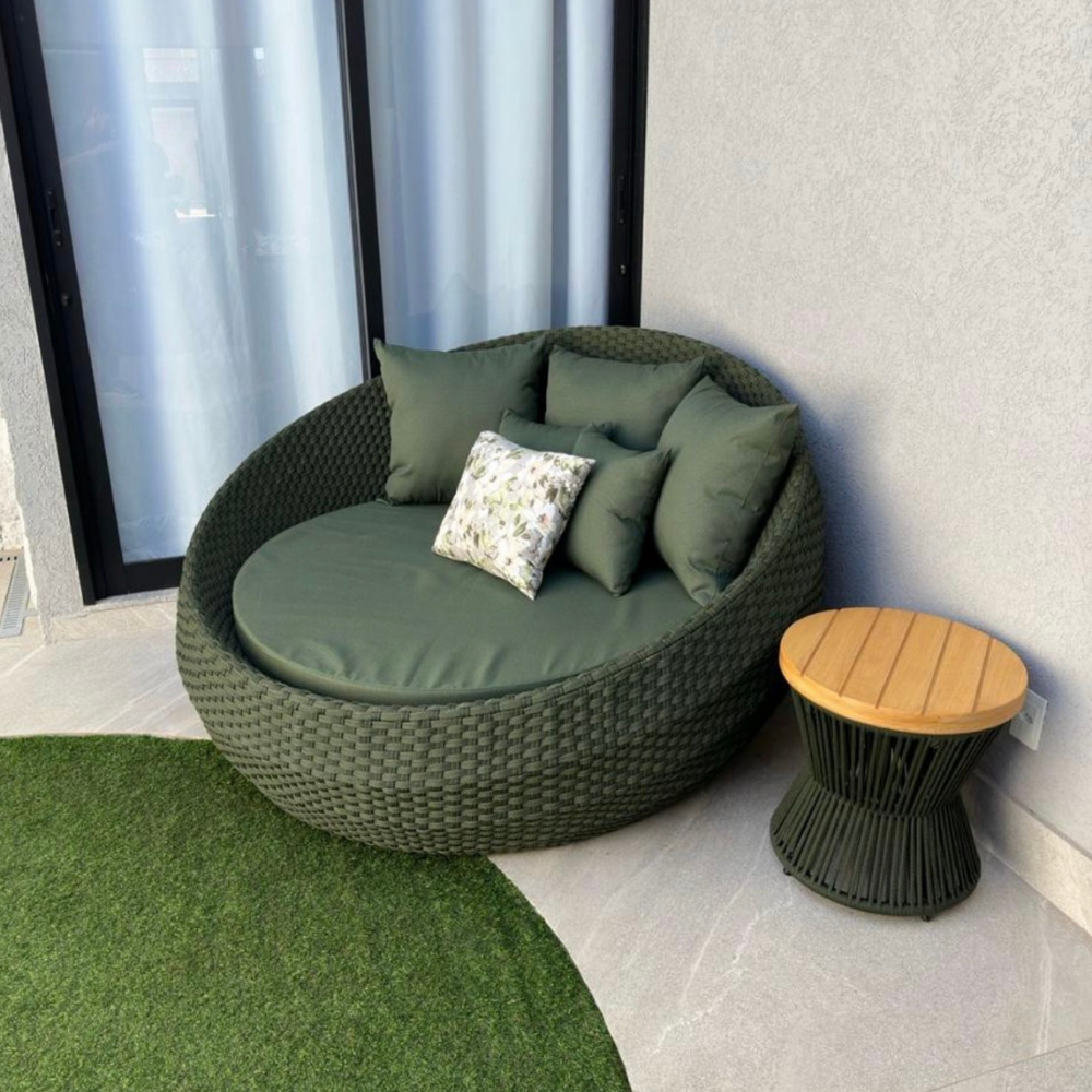 Em corda náutica, com estrutura em alumínio.