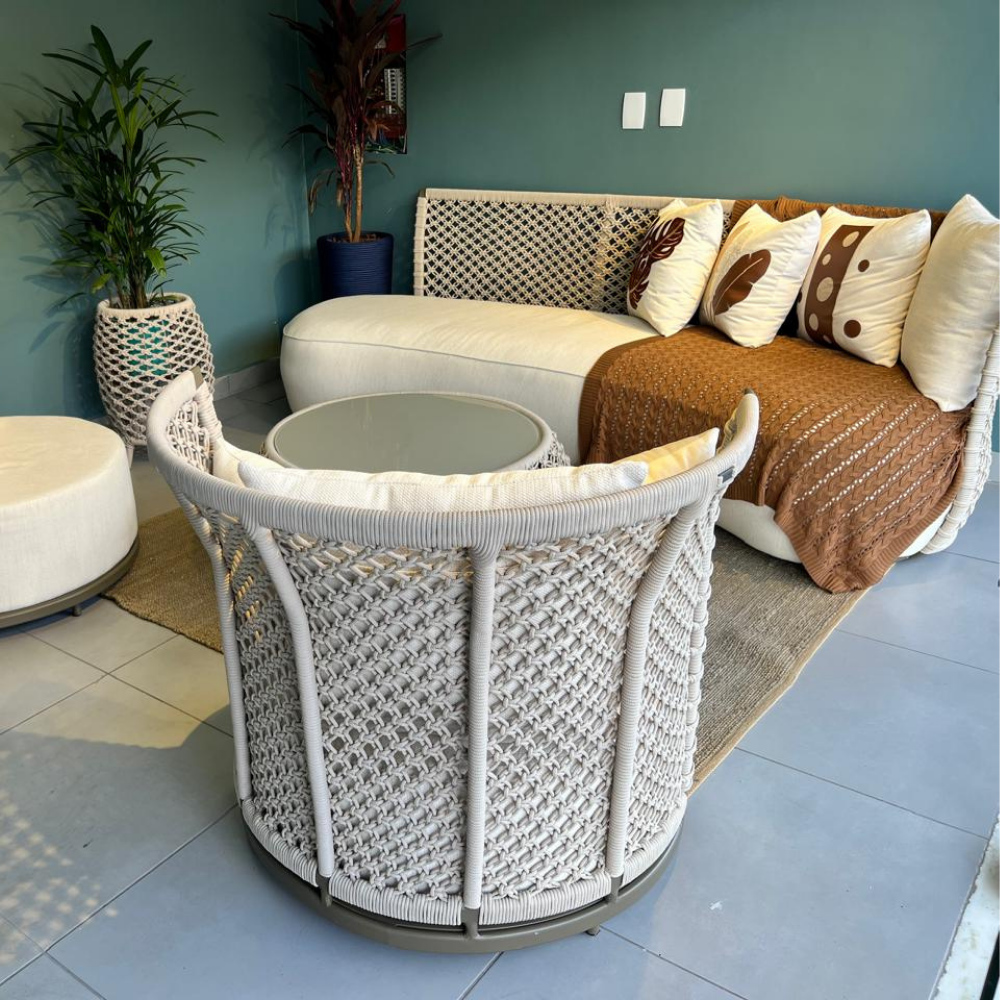Feito em corda náutica em trama macramê